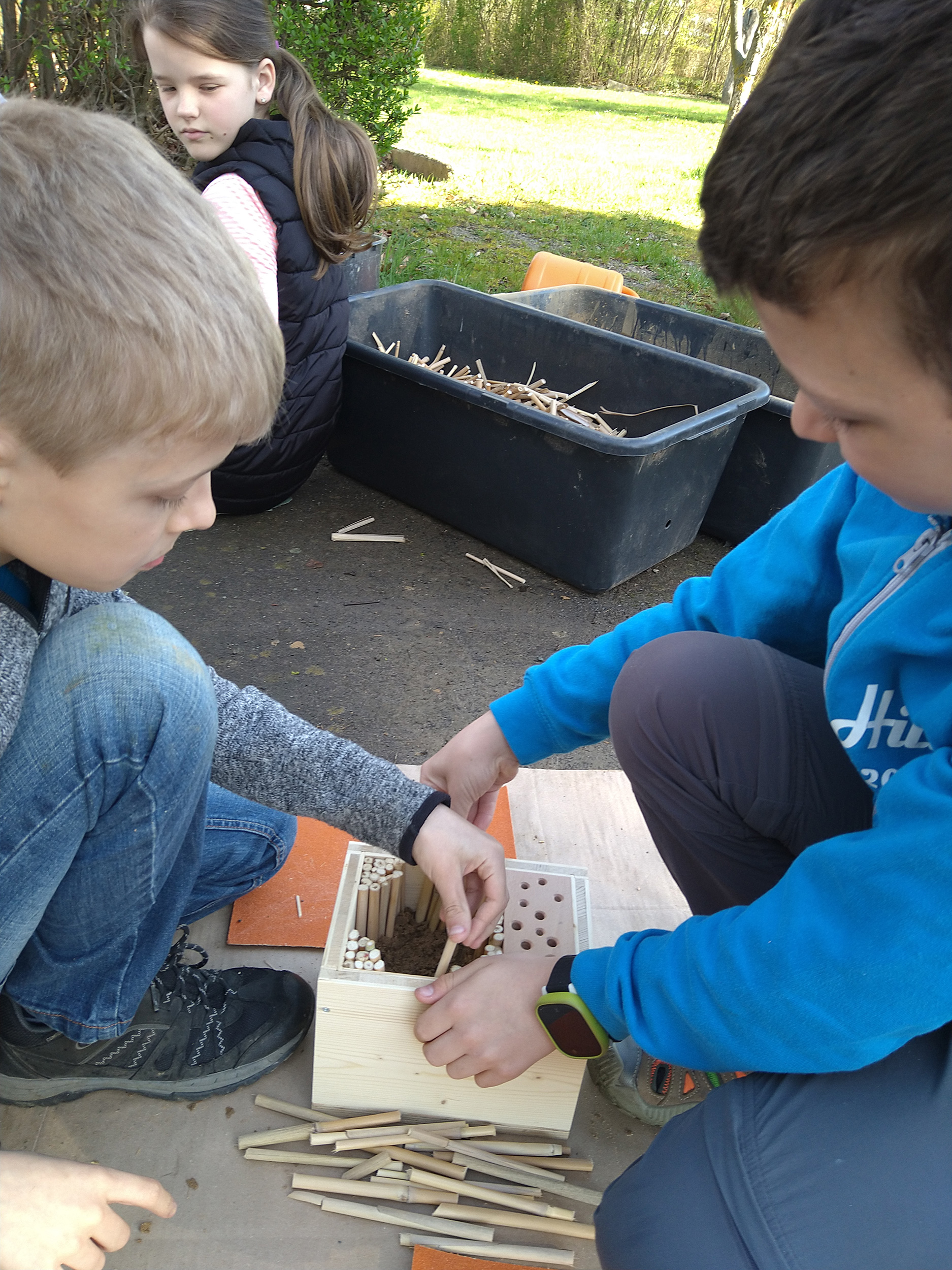 Wir sind begeistert von unseren kleinen Handwerkern und freuen uns schon auf viele nützliche Gäste, die in das neue Insektenhotel einziehen werden.