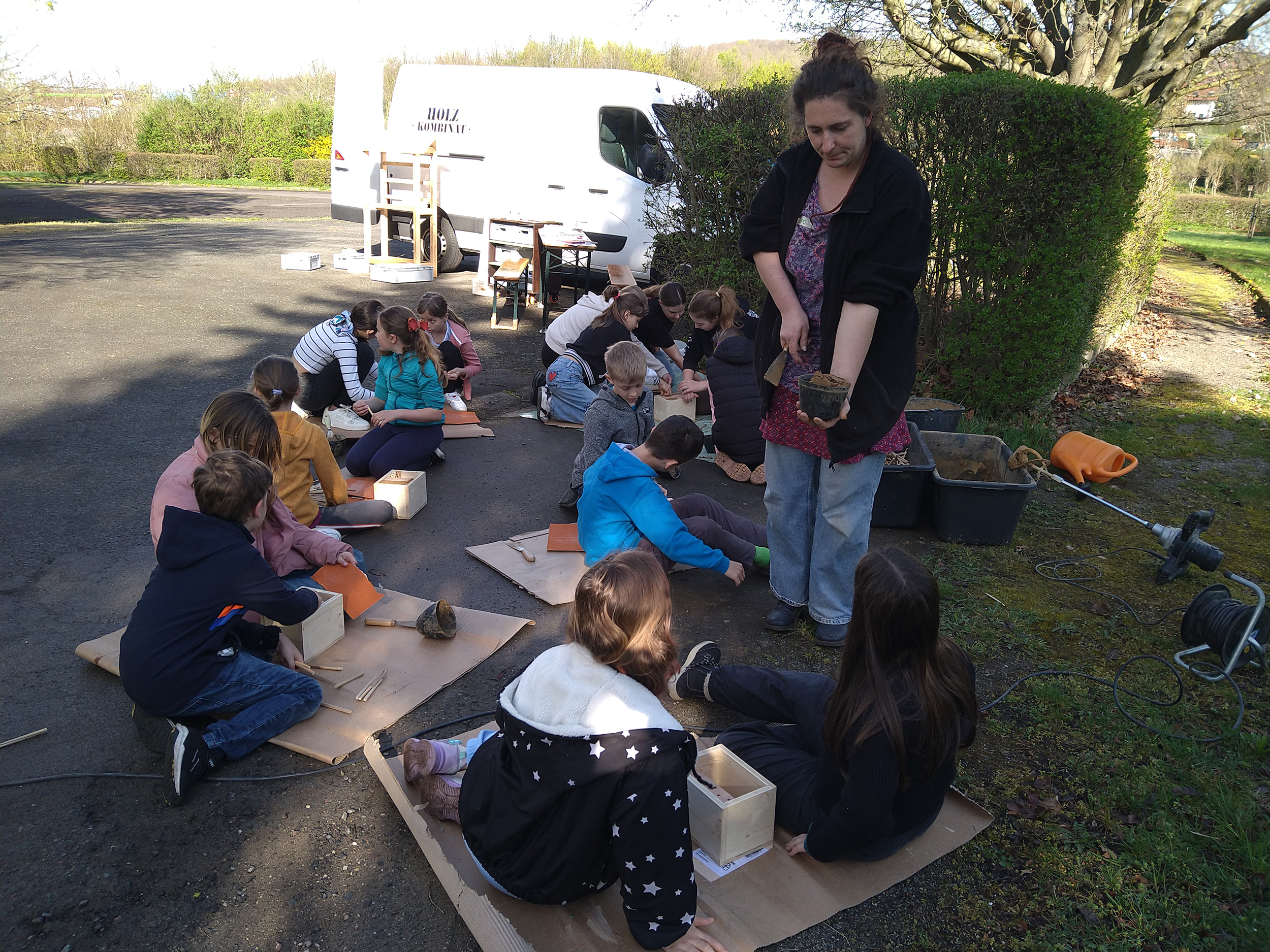Gemeinsam mit ihrer Klassenlehrerin Frau Pohle und dem Holzkombinat aus Chemnitz tauchten die Kinder in die Welt des Holzhandwerks ein. Nach der Begrüßung wurden die Skizzen des Insektenhotels gezeigt und die verschiedenen Arbeitsschritte erklärt. Die Schüler wurden in kleine Gruppen eingeteilt, die an unterschiedlichen Stationen arbeiteten und so alle Schritte des Bauprozesses hautnah miterlebten.
